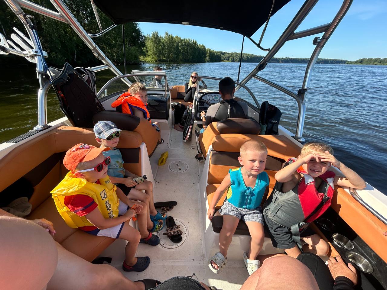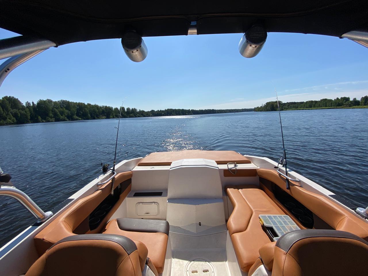 Аренда включает катер и все необходимое оборудование для водных видов спорта.